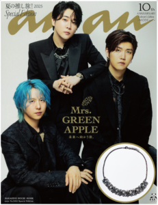 雑誌「anan」にて、Mrs.GREEN APPLEの大森元貴さんに弊社のアクセサリーを選んで頂きました!!